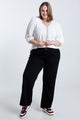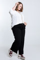 Pantalon large uni avec boucle dorée