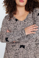 Notre mannequin Délia mesure 171 cm et porte une taille 46 (=taille Paprika 2)