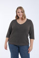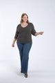 Notre mannequin Ellen mesure 180 cm et porte une taille 48