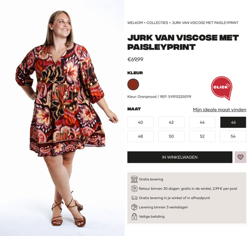Klik eenvoudig op de knop "Vind mijn ideale maat" direct op de pagina van een artikel om er gebruik van te maken.