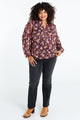 Blouse met ruches en bloemenprint en lurex