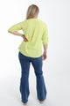 Ons model Aglaé is 180 cm lang en draagt ​​maat 44
