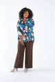 Blouse met bladprint en lurex