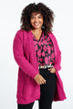 Lange, effen cardigan met sjaalkraag en decoratieve knopen