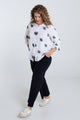• Ons model Aglaé is 180 cm lang en draagt ​​maat 44