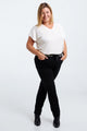 Effen slim jegging 'Lolly' met lurex en elastische sporttaille