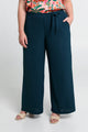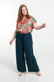 Losse, effen broek met geknoopte riem