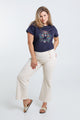 Effen palazzo broek met 6 gouden knopen vooraan