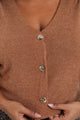 Ons model Sharon is 178 cm lang en draagt ​​maat 48