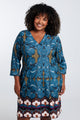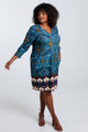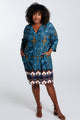Korte, rechte jurk met geplaatste etnische print