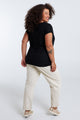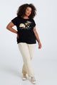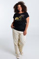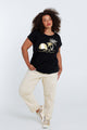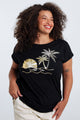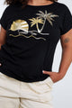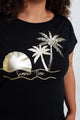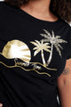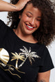 T-shirt van katoen met folieprint van palmbomen en pailletten