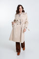 • Halflange, effen trenchcoat met dubbele rij knopen-Paprika-11