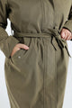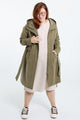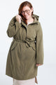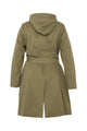 Halflange, effen trenchcoat met rits, kap en strikriem